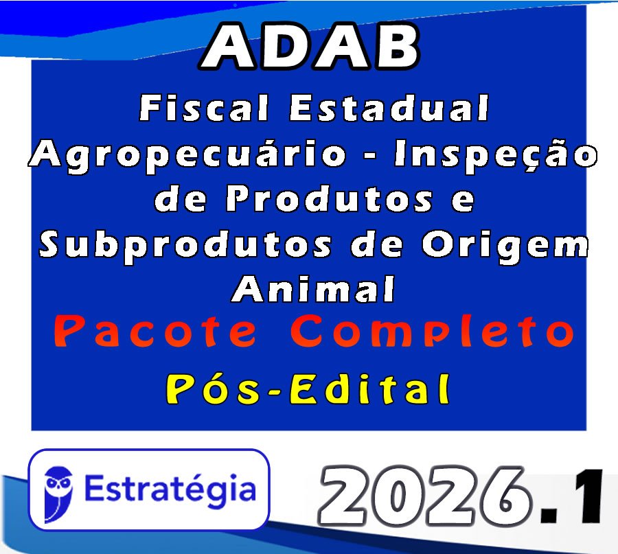 ADAB (Fiscal Estadual Agropecuário – Inspeção de Produtos e Subprodutos de Origem Animal) – Pacote Completo – 2026 Pós-Edital – Estratégia