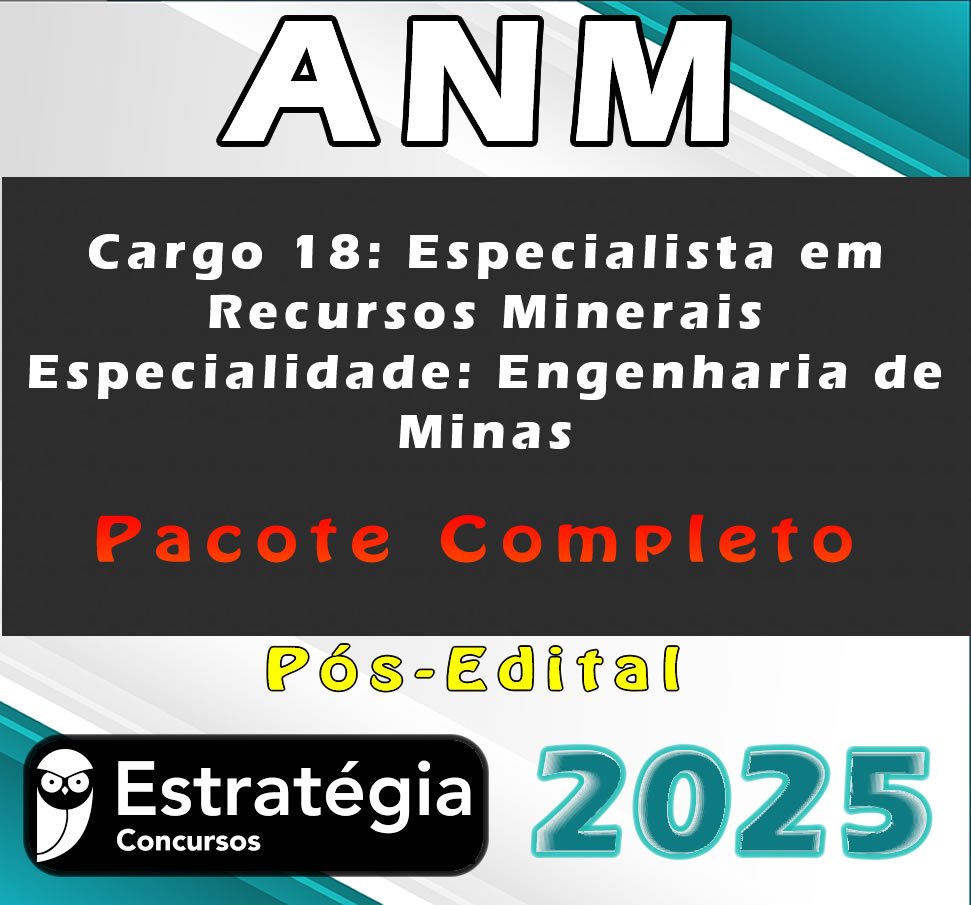 ANM Cargo 18: Especialista em Recursos Minerais – Especialidade: Engenharia de Minas – Pacote Teórico – Estrategia 2025 (Pós-Edital)