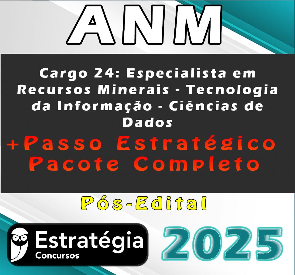 ANM (Cargo 24: Especialista em Recursos Minerais – Tecnologia da Informação – Ciências de Dados) Pacotaço – Pacote Teórico + Pacote Passo Estratégico – Estrategia 2025 (Pós-Edital)