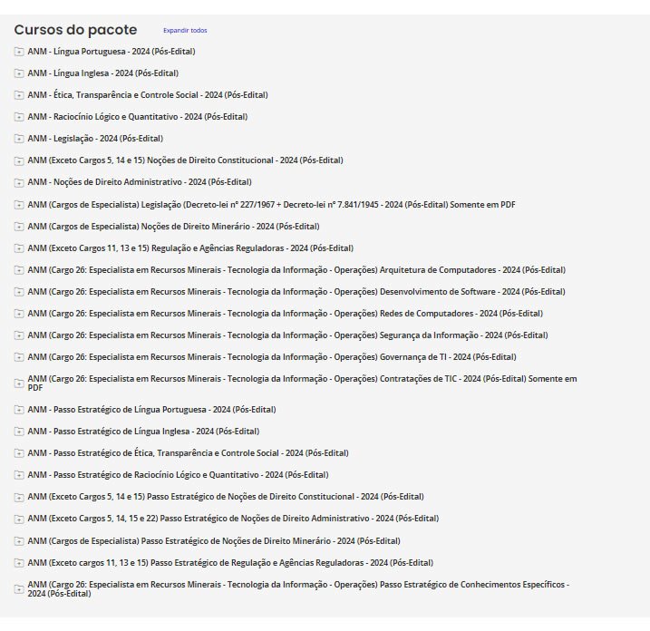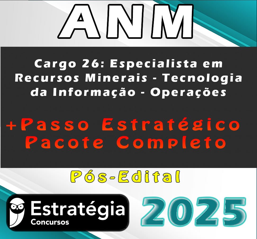 ANM (Cargo 26: Especialista em Recursos Minerais – Tecnologia da Informação – Operações) Pacotaço – Pacote Teórico + Pacote Passo Estratégico – Estrategia 2025 (Pós-Edital)