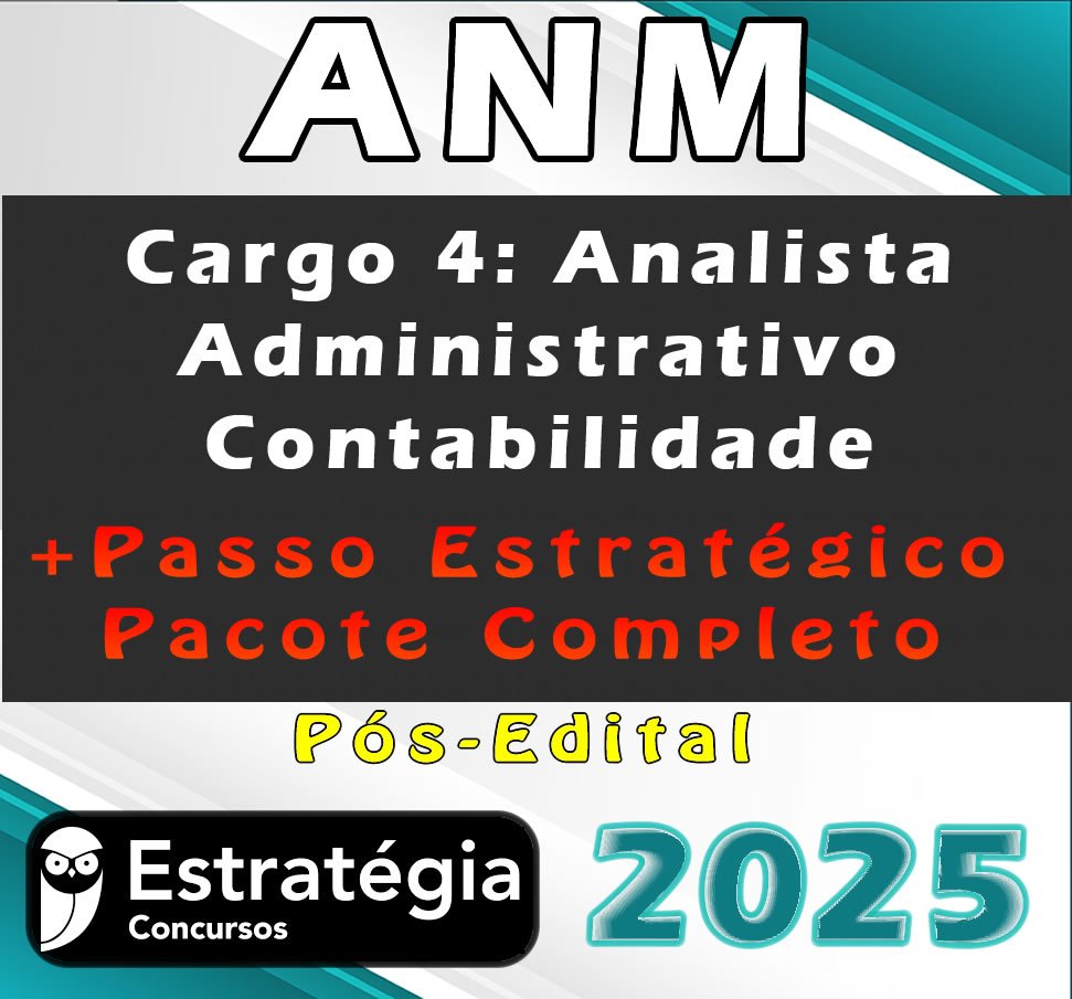 ANM (Cargo 4: Analista Administrativo – Contabilidade) Pacotaço – Pacote Teórico + Pacote Passo Estratégico – Estrategia 2025 (Pós-Edital)