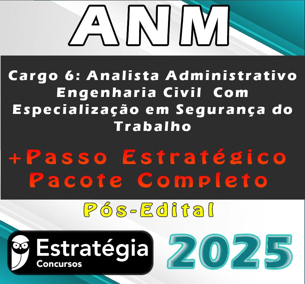ANM (Cargo 6: Analista Administrativo – Engenharia Civil – Com Especialização em Segurança do Trabalho) Pacotaço – Pacote Teórico + Pacote Passo Estratégico – Estrategia 2025 (Pós-Edital)