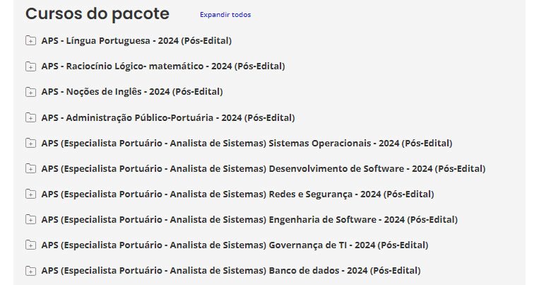 APS (Especialista Portuário – Analista de Sistema) Pacote – 2024 (Pós-Edital)