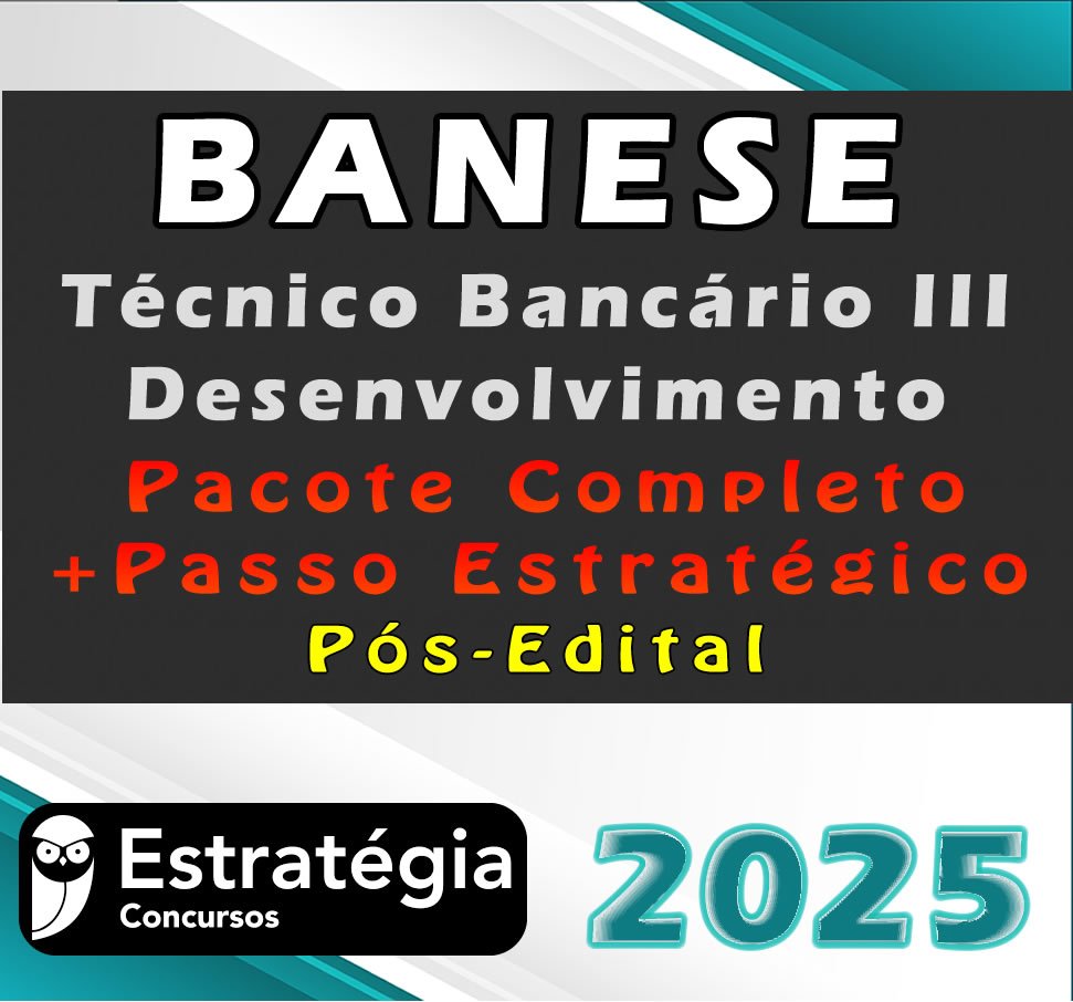 BANESE (Técnico Bancário III – Desenvolvimento) Pacotaço – Pacote Teórico + Pacote Passo Estratégico – Estrategia 2025