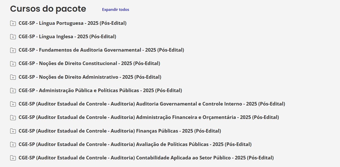 CGE-SP (Auditor Estadual de Controle – Auditoria) (Pós-Edital) Pacotaço – Pacote Teórico + Pacote Passo Estratégico – Estrategia 2025.2