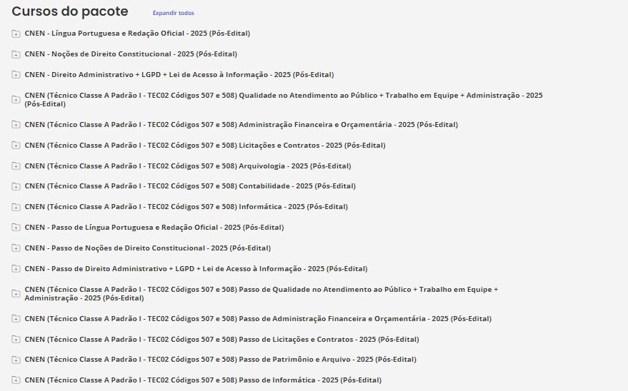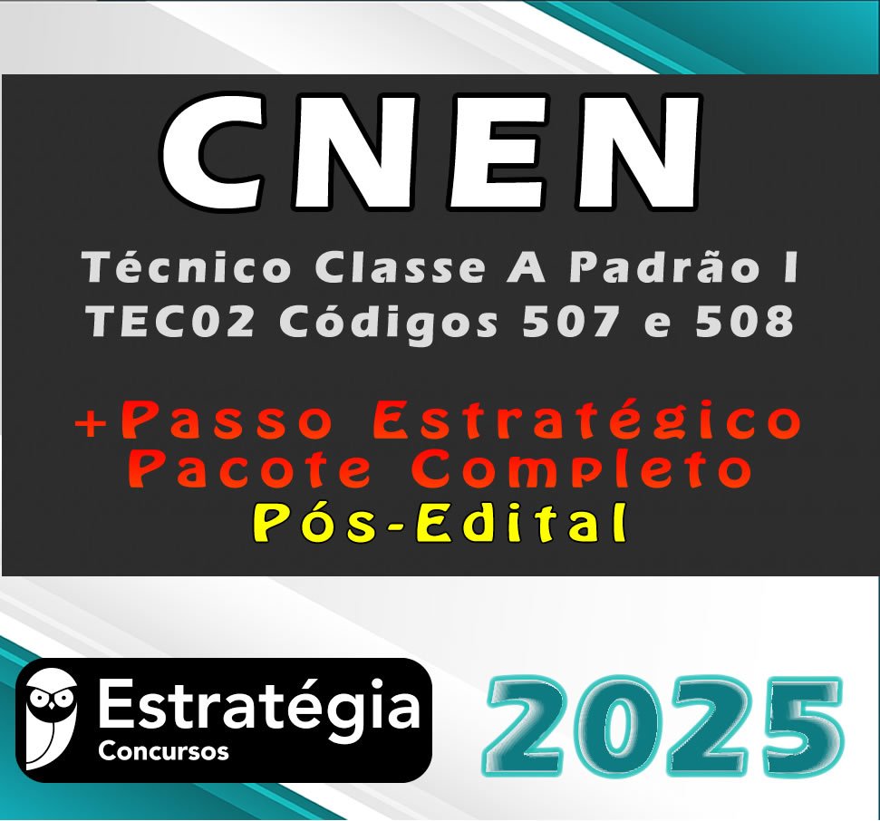 CNEN (Técnico Classe A Padrão I – TEC02 Códigos 507 e 508) Pacotaço – Pacote Teórico + Pacote Passo Estratégico – Estrategia 2025 – Pós-Edital