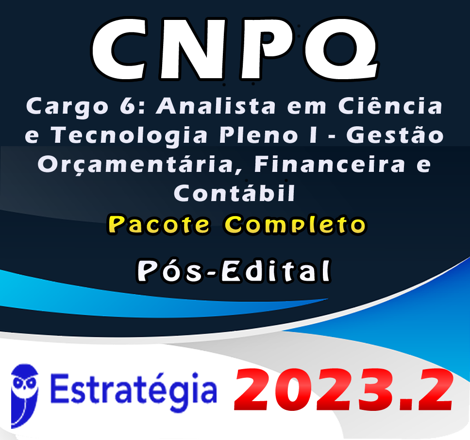 CNPq (Cargo 6: Analista em Ciência e Tecnologia Pleno I – Gestão Orçamentária, Financeira e Contábil) Pacote – 2023 (Pós-Edital)