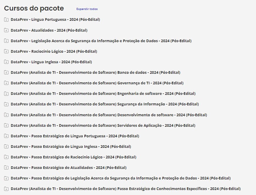 DataPrev (Analista de TI – Desenvolvimento de Software) Pacotaço – Pacote Teórico + Pacote Passo Estratégico – 2024 (Pós-Edital)