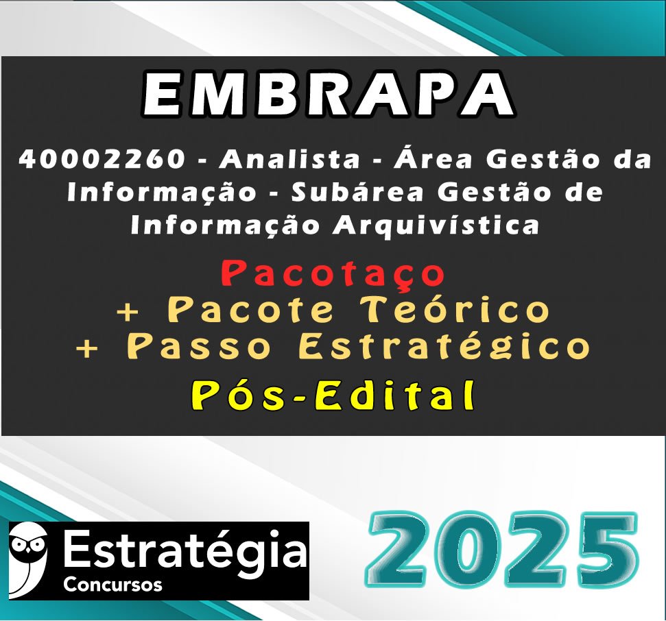 EMBRAPA (40002260 – Analista – Área Gestão da Informação – Subárea Gestão de Informação Arquivística) Pacote Completo + Passo Estratégico – Estrategia 2025