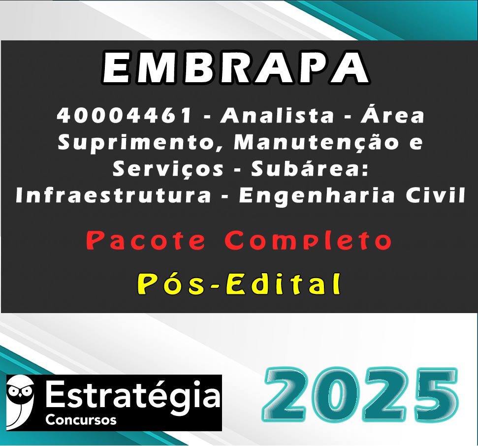 EMBRAPA (40004461 – Analista – Área Suprimento, Manutenção e Serviços – Subárea: Infraestrutura – Engenharia Civil) Pacote Completo – Estrategia 2025
