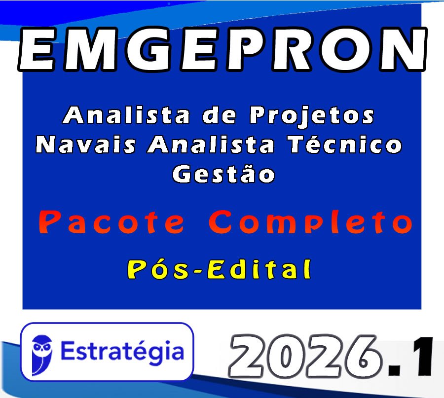 EMGEPRON (Analista de Projetos Navais – Analista Técnico – Gestão) Pacote Completo- 2026 (Pós-Edital)- Estratégia