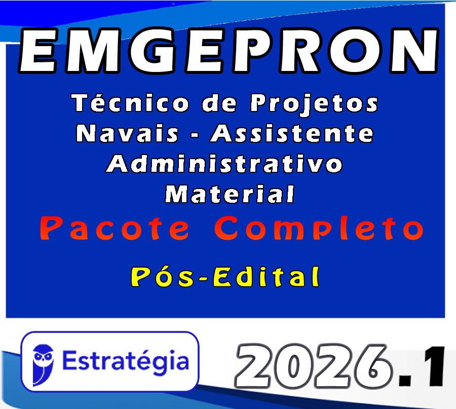 EMGEPRON Técnico de Projetos Navais – Assistente Administrativo – Material Pacote Completo- 2026 (Pós-Edital)- Estratégia