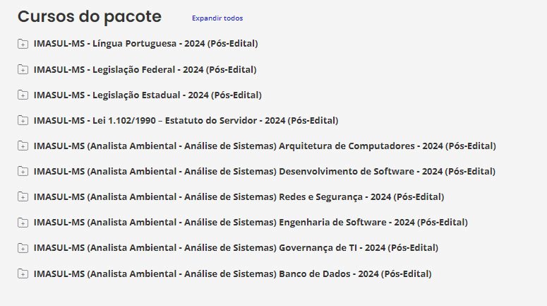 IMASUL-MS (Analista Ambiental – Análise de Sistemas) Pacote – Estrategia 2024 (Pós-Edital)