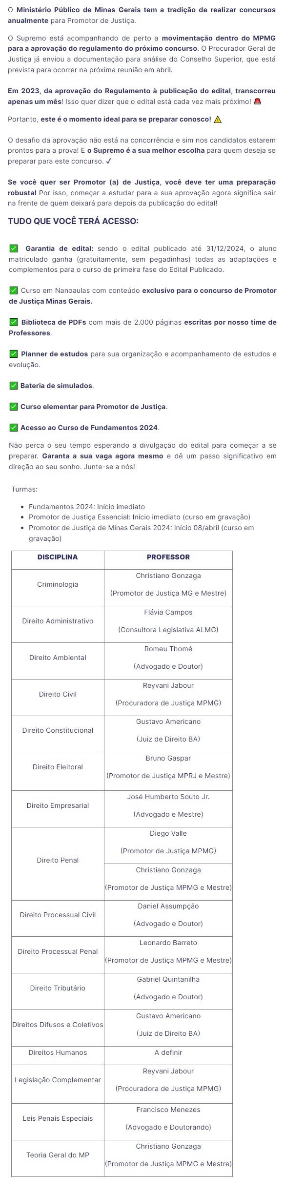 MP-MG Promotor de Justiça – Minas Gerais 2024 SupremoTV 2024 – Pré Edital (Garantia de edital)