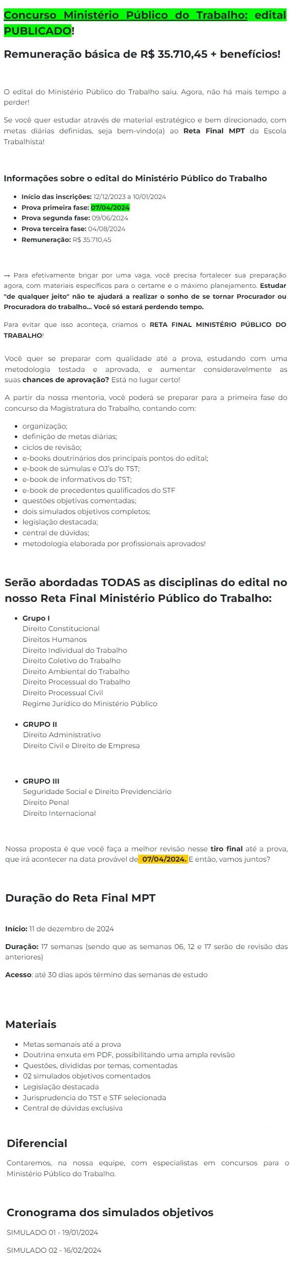 MPT – Ministério Público do Trabalho – Reta Final – Escola Trabalhista 2023/2024