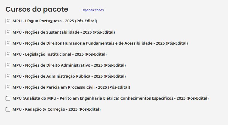 É o nosso tradicional material preparatório. É composto de cursos completos, de vídeos e PDFs (que podem ser estudados juntos ou separadamente), com teoria e questões comentadas. Esse material é feito para ser utilizado por alunos de qualquer nível, pois todas as matérias e assuntos são ensinados do ZERO ao AVANÇADO, com milhares de questões comentadas. Confira o que consta no nosso Pacote p/ MPU.