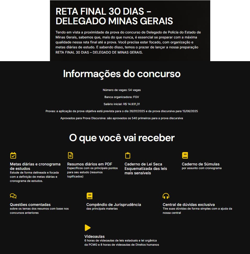 PC-MG RETA FINAL DELEGADO MINAS GERAIS DEDICACAO DELTA 2024.2- 30 dias