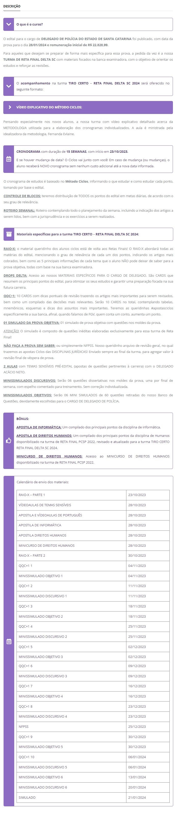 PC SC DELEGADO – TIRO CERTO – RETA FINAL DELTA SC ( CICLOS 2024)