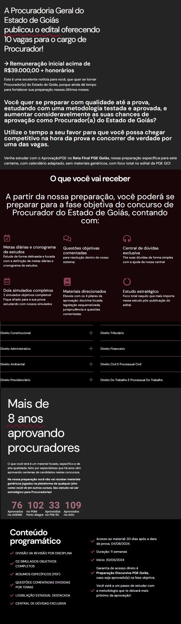 PREPARAÇÃO PÓS EDITAL PGE GOIÁS – RETA FINAL (APROVAÇÃO PGE 2024) PGE GO