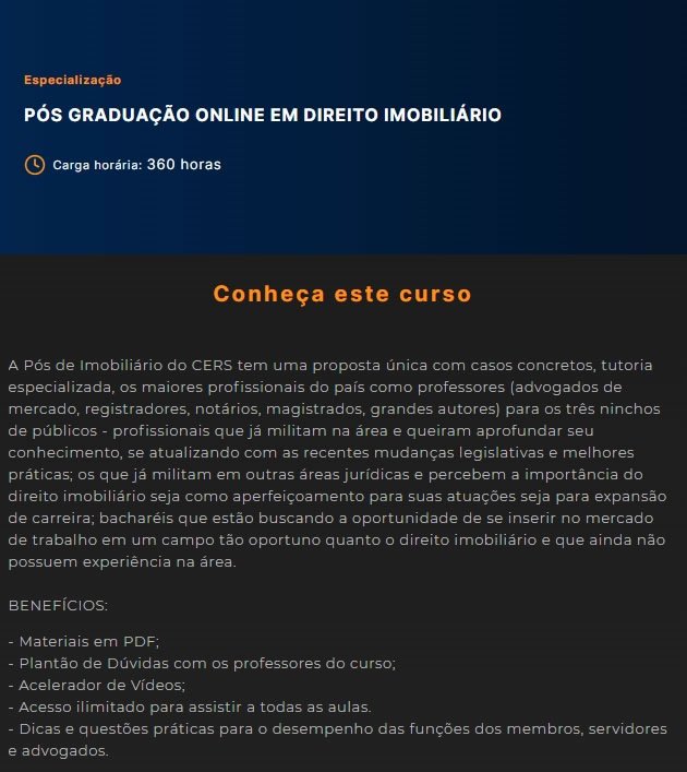 Pós Graduação em Direito Imobiliário – Turma 2024 (CERS 2024)