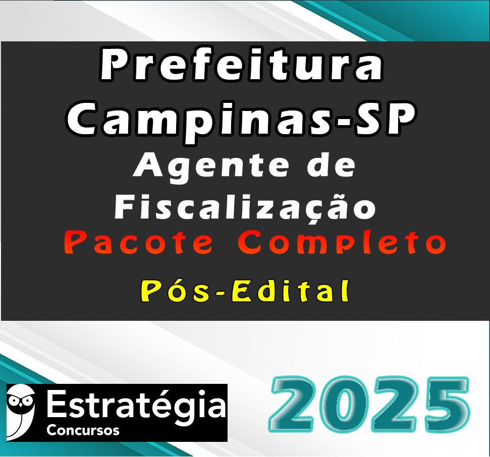 Prefeitura Campinas-SP (Agente de Fiscalização)- Pacote Téorico – Estrategia 2025 – Pós-Edital