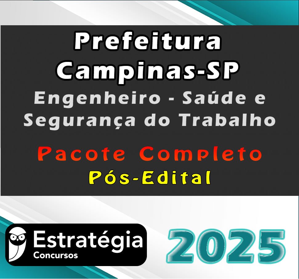 Prefeitura Campinas-SP (Engenheiro – Saúde e Segurança do Trabalho)- Pacote Téorico – Estrategia 2025 – Pós-Edital