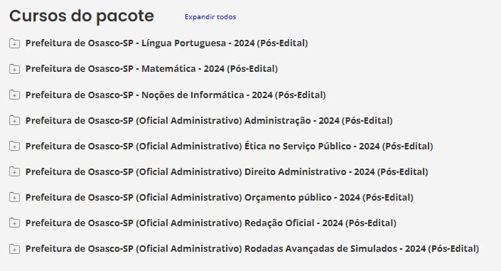 Prefeitura de Osasco-SP (Oficial Administrativo) Pacote – Estrategia 2024 (Pós-Edital)