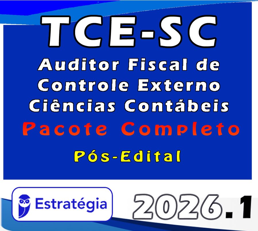 TCE-SC (Auditor Fiscal de Controle Externo – Ciências Contábeis) Pacote Completo – 2026 (Pós-Edital) – Estratégia