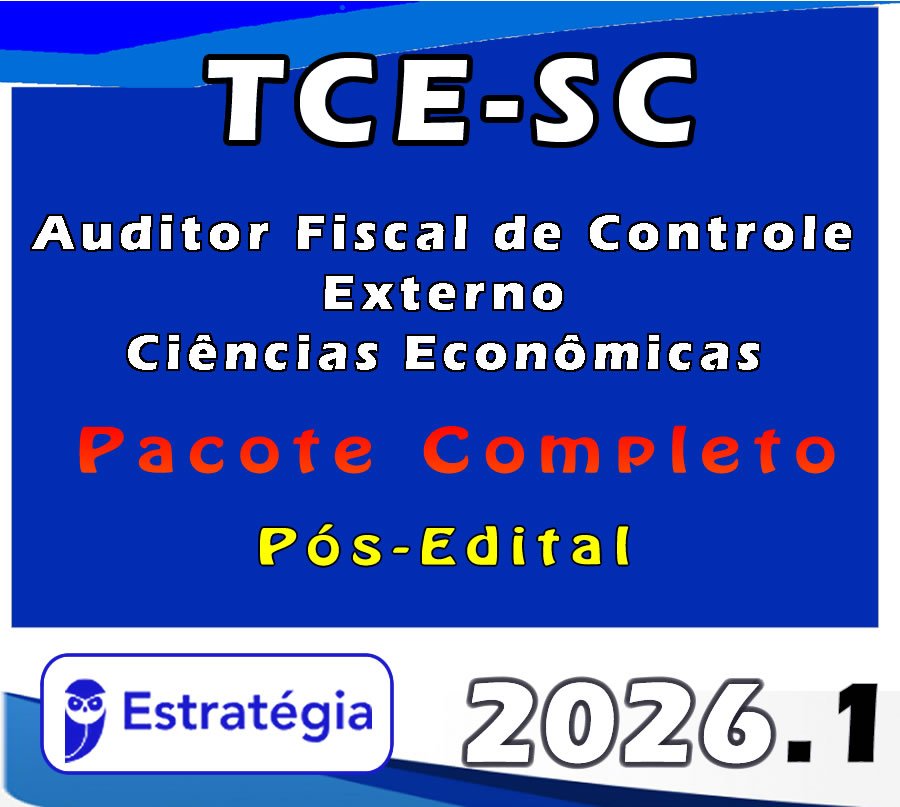 TCE-SC (Auditor Fiscal de Controle Externo – Ciências Econômicas) Pacote Completo – 2026 (Pós-Edital) – Estratégia