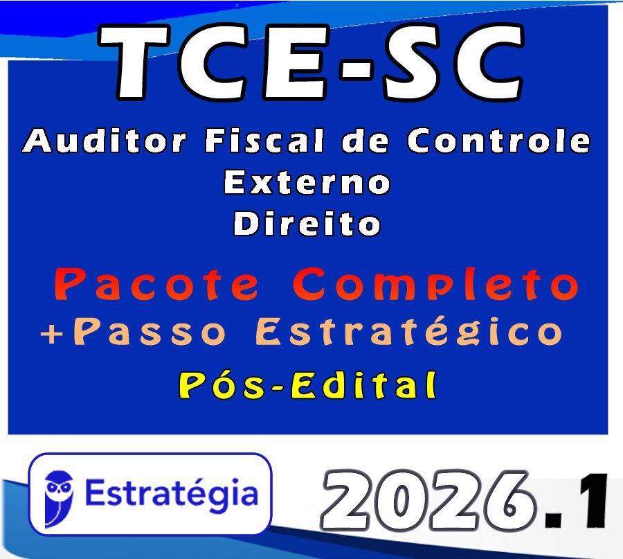 TCE-SC (Auditor Fiscal de Controle Externo – Direito) Pacotaço – Pacote Téorico + Pacote Passo Estratégico – 2026 (Pós-Edital) – Estratégia
