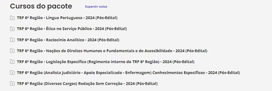 É o nosso tradicional material preparatório. É composto de cursos completos, de vídeos e PDFs (que podem ser estudados juntos ou separadamente), com teoria e questões comentadas. Esse material é feito para ser utilizado por alunos de qualquer nível, pois todas as matérias e assuntos são ensinados do ZERO ao AVANÇADO, com milhares de questões comentadas. Confira o que consta no nosso Pacote p/ TRF 6.