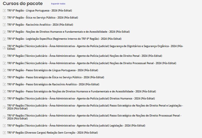 TRF 6ª Região (Técnico Judiciário – Área Administrativa – Agente da Polícia Judicial) Pacotaço – Pacote Teórico + Pacote Passo Estratégico- Estrategia 2024 (Pós-Edital)