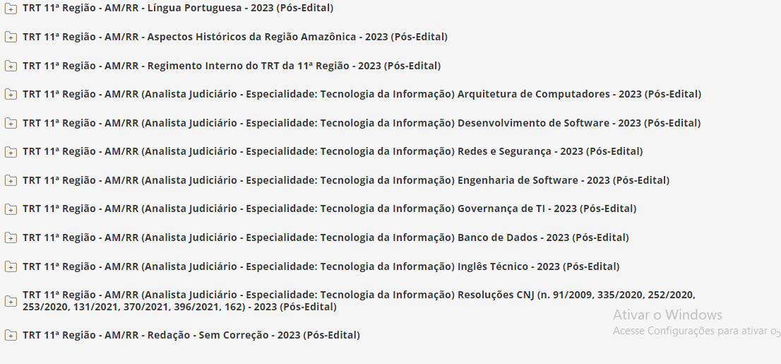 TRT 11ª Região – AM/RR (Analista Judiciário – Especialidade: Tecnologia da Informação) Pacote – 2023 (Pós-Edital)