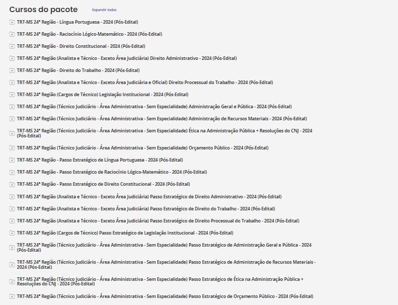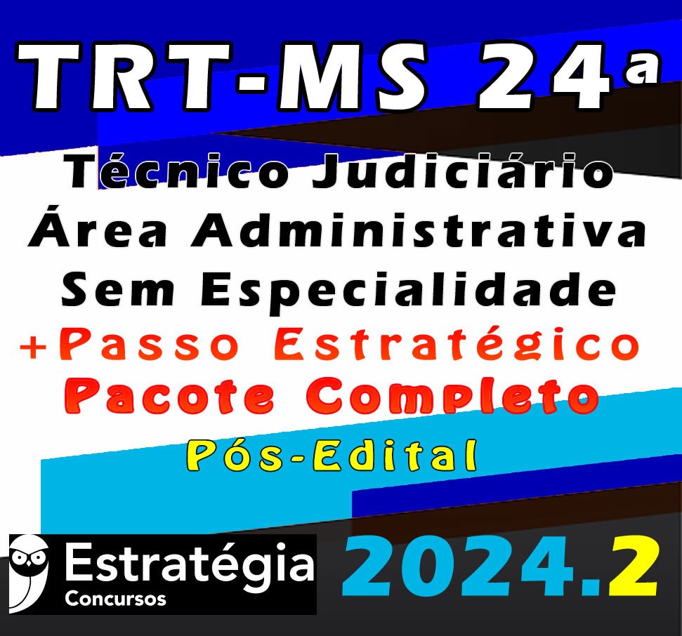 TRT-MS 24ª Região (Técnico Judiciário – Área Administrativa – Sem Especialidade) Pacotaço – Pacote Teórico + Pacote Passo Estratégico -Estrategia 2024 (Pós-Edital)
