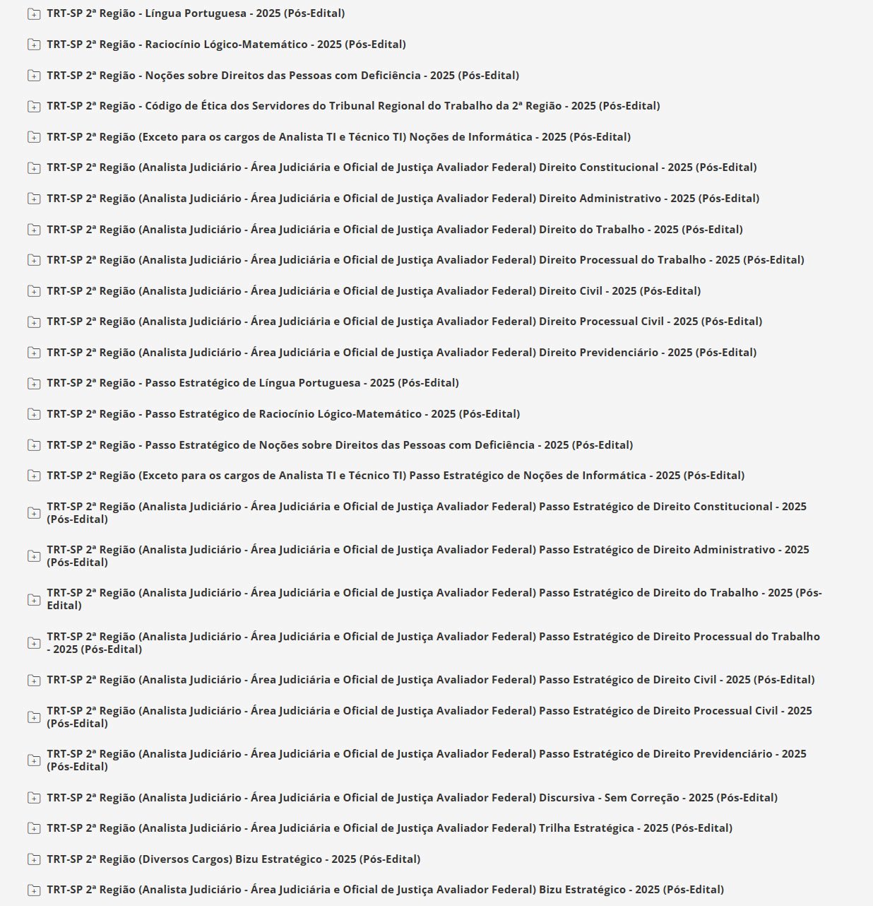 TRT-SP 2ª Região (Analista Judiciário – Área Judiciária e Oficial de Justiça Avaliador Federal) Pacotaço – Pacote Teórico + Pacote Passo Estratégico – Pós-Edital – Estrategia 2025
